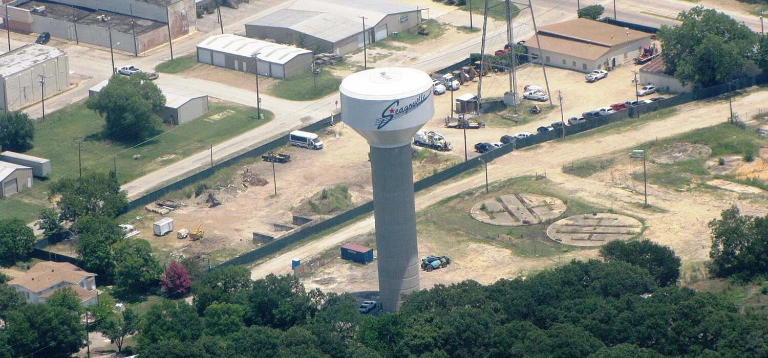 Halff designed a new 500,000-gallon composite elevated storage tank. The base of the tank includes a partition wall with an air-conditioned room for the Seagoville Fire Department’s radio equipment. The project included approximately 1,600 linear feet of water line to connect the tank to the existing distribution system at three different points. Halff surveyed the proposed tank site and the overflow elevation of the City’s existing tank to ensure the new tank was the same height. Services also included inspection of the City’s existing tank and rehabilitation recommendations and investigation, concept development, and alternatives analysis for upgrades to the City’s pump station.